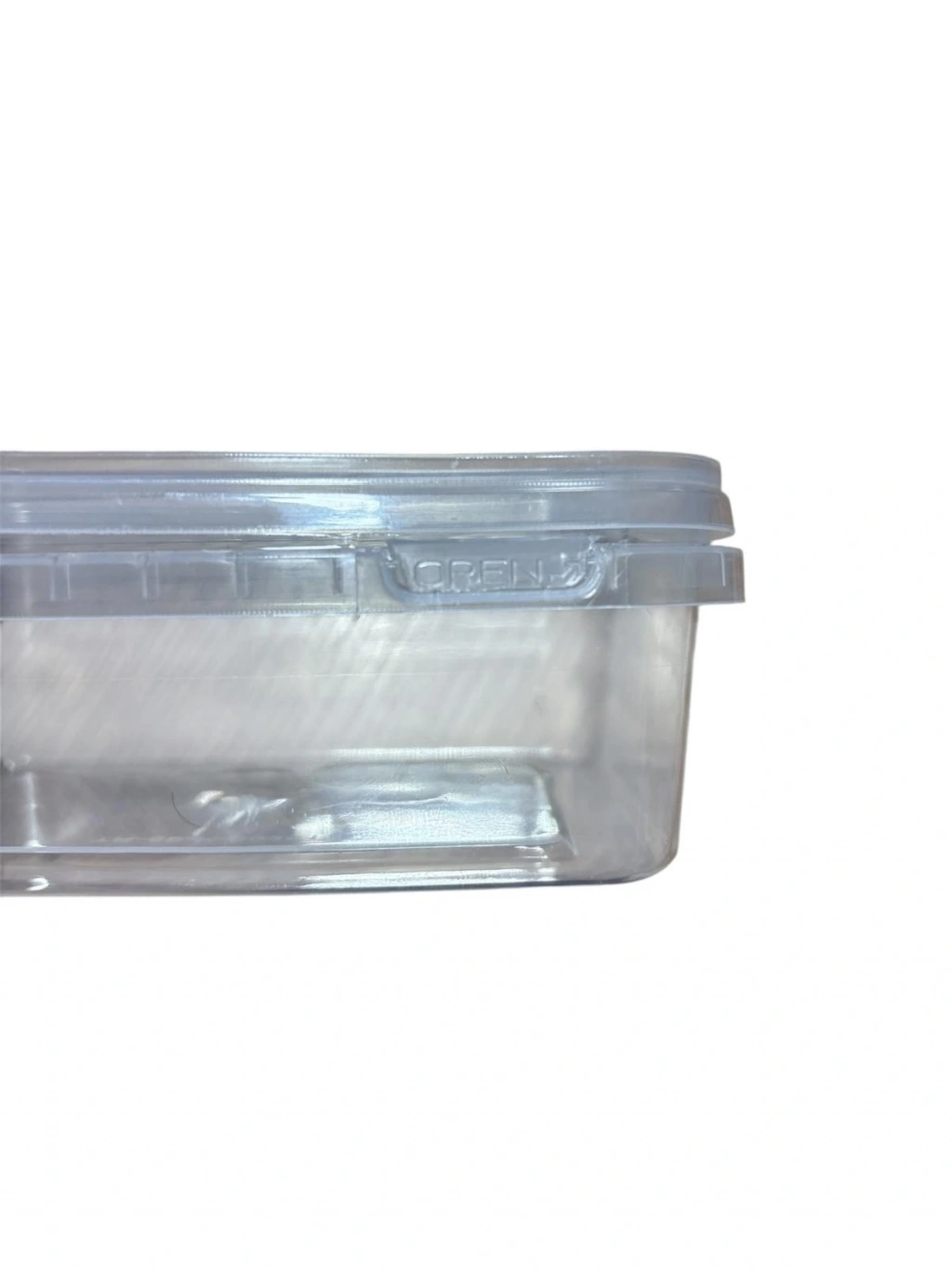 350 ml. hacminde , 123 mm * 80.4 mm H:40 mm ölçülerinde ,sert plastik kırılmaya mukavim, dikdörtgen şeffaf gıda kasesidir.