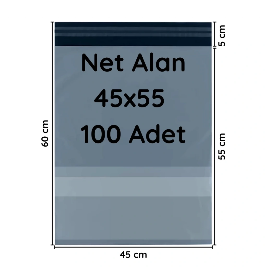 • Büyük Boy Kargo Poşeti Cepli Ölçüleri; 45 cm genişlik x 55 cm uzunluk + 5 cm kapak bulunmaktadır.