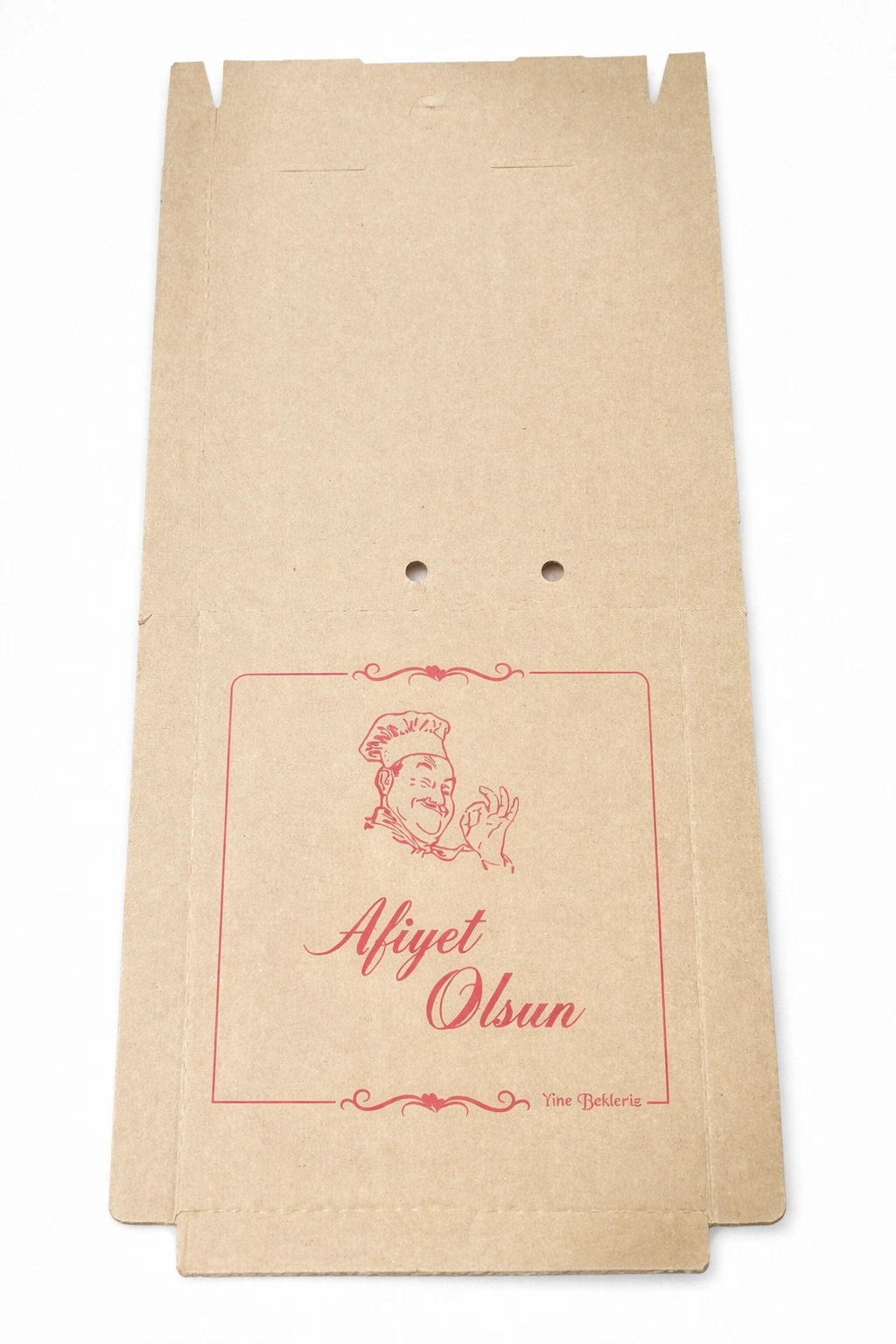 Dayanıklı mukavva malzemeden üretilmiş olan pizza kutusu, sıcaklığı muhafaza eder ve içeriğinizi dış etkenlerden korur.