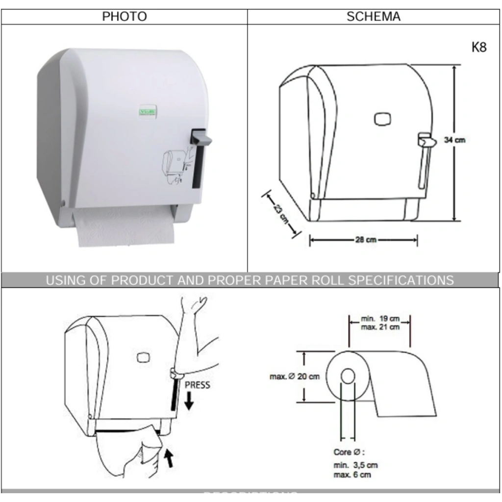• 19-21 cm aralığındaki tüm rulo kağıt havlular ile kullanılabilir.